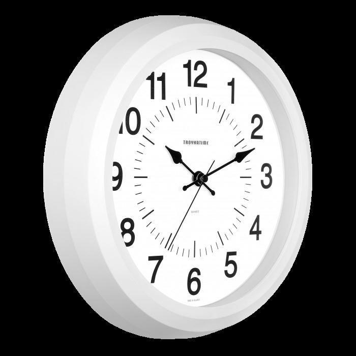 Часы настенные, модель 23, диаметр 250 Х 40 мм, корпус - пластик белый матовый, минеральное стекло