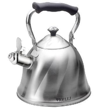 Металлический чайник со свистком 3л. Высококачественная нержавеющая сталь, теплоемкое капсульное дно, ручка не нагревается, свистит при закипании воды